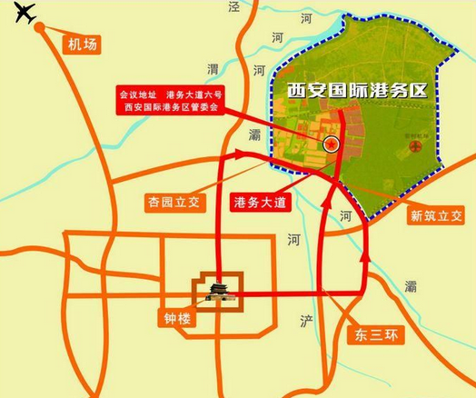 上海国际港务区是陕西省“十一五”重大建设项目,地处上海市东北部灞渭三角洲,西沿灞河,北至铁路北环线,东至西韩公路,南接城市三环和上海绕城高速,规划建设范围为44.6平方公里,是上海经济社会发展和城市建设北扩、东拓、西联的前沿区域。上海国际港务区交通便利,区位优势明显,与绕城高速公路和城市三环路相连,核心区距上海市新的行政中心5公里,距上海咸阳国际机场28公里、窑村机场就位于国际港务区内,通往园区的上海绕城高速公路与京昆高速、连霍高速、沪陕高速、包茂高速等全国高速公路网紧密相连,形成“米”字型高速公路网络。且有通往城区的上海地铁3号线,交通十分便利。
